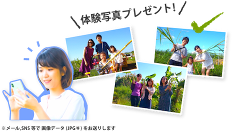 - 台風・大雨などの悪天候、その他不可抗力により 催行不能の場合は、 体験参加前までにご連絡致します。